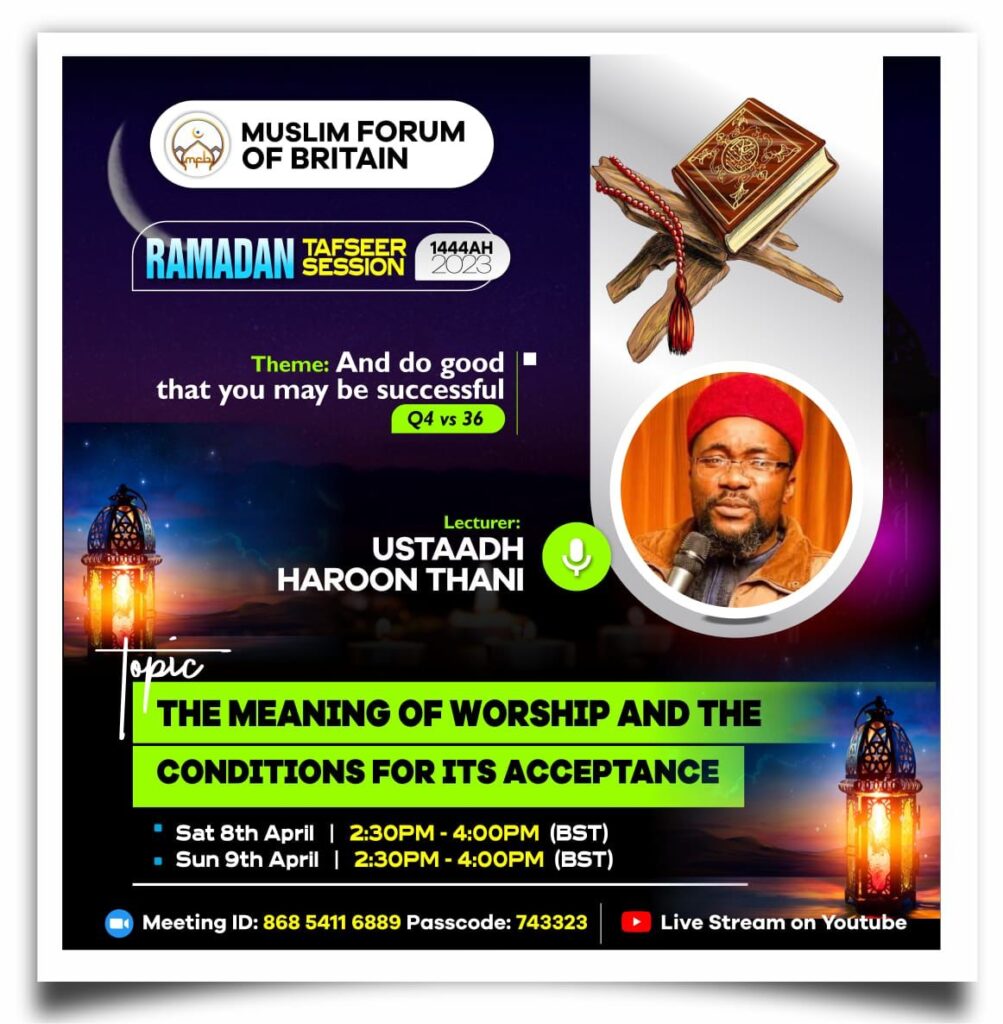 The Meaning of Worship And The Condition For Its Acceptance https://new.muslimforumofbritain.co.uk/2023/05/13/the-meaning-of-worship-and-the-condition-for-its-acceptance/ Sat, 13 May 2023 17:34:09 +0000 https://muslimforumofbritain.co.uk/v2/?p=1327 The Meaning of Worship And The Condition For Its Acceptance
